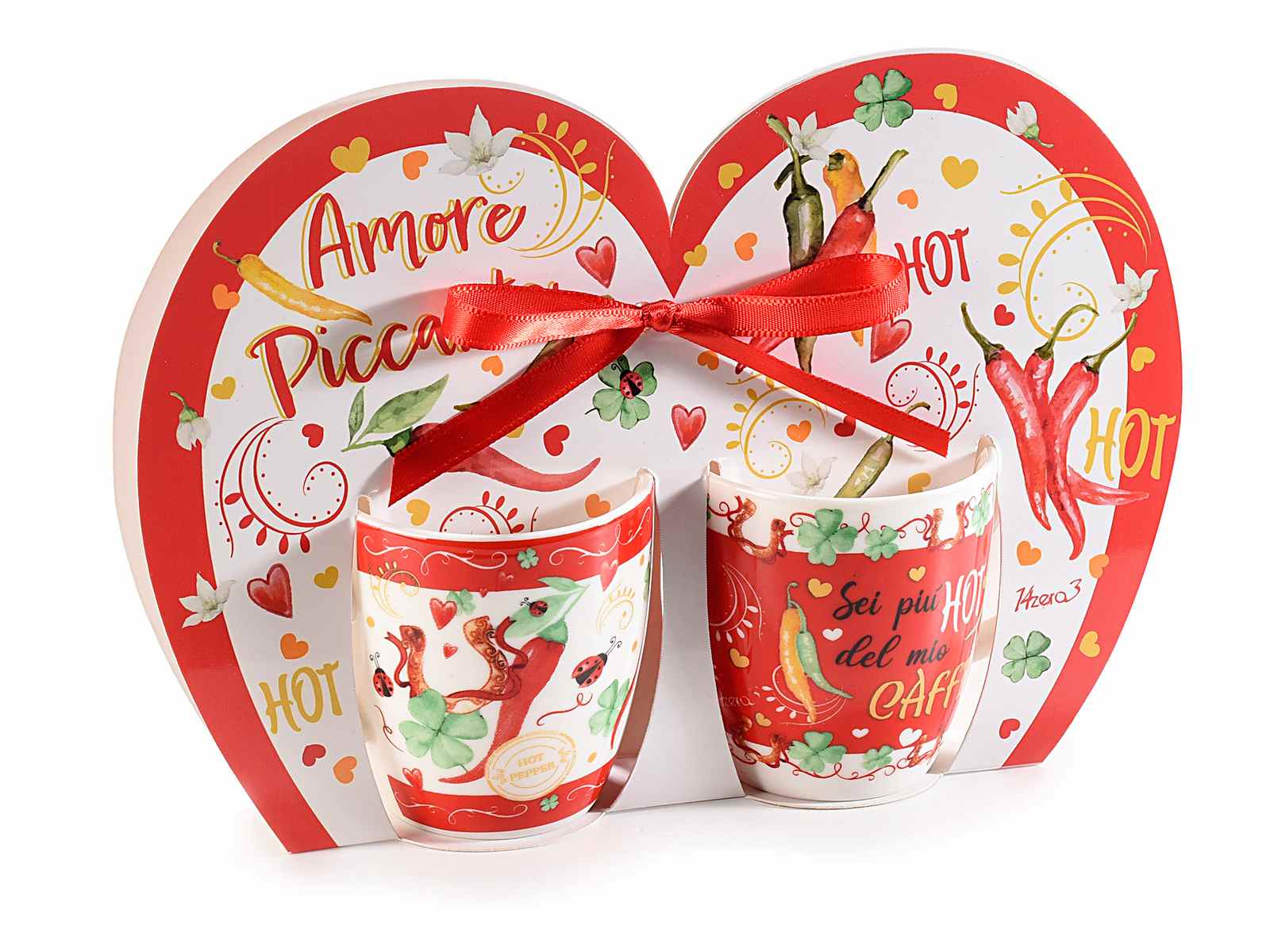 Coffret cadeau 2 tasses porcelaine 70 ml, porte-bonheur
