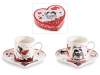 Tasses et soucoupes à café en porcelaine pour la Saint-Valentin, présentées dans un coffret cadeau en forme de cœur avec des amoureux