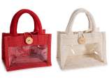 Sacs en jute colorés avec fenêtre transparente, poignées en corde de coton et bouton de fermeture pour emballage cadeau