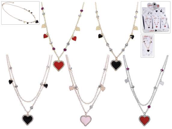 Colliers en métal ornés de cœurs laqués et de strass, accompagnés d'une carte de présentation de 20 pièces pour la Saint-Valentin.