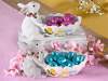 Contenants en céramique en forme d'œuf de Pâques, ornés de l'inscription « Joyeuses Pâques » et d'un lapin de Pâques décoré de motifs floraux en relief.