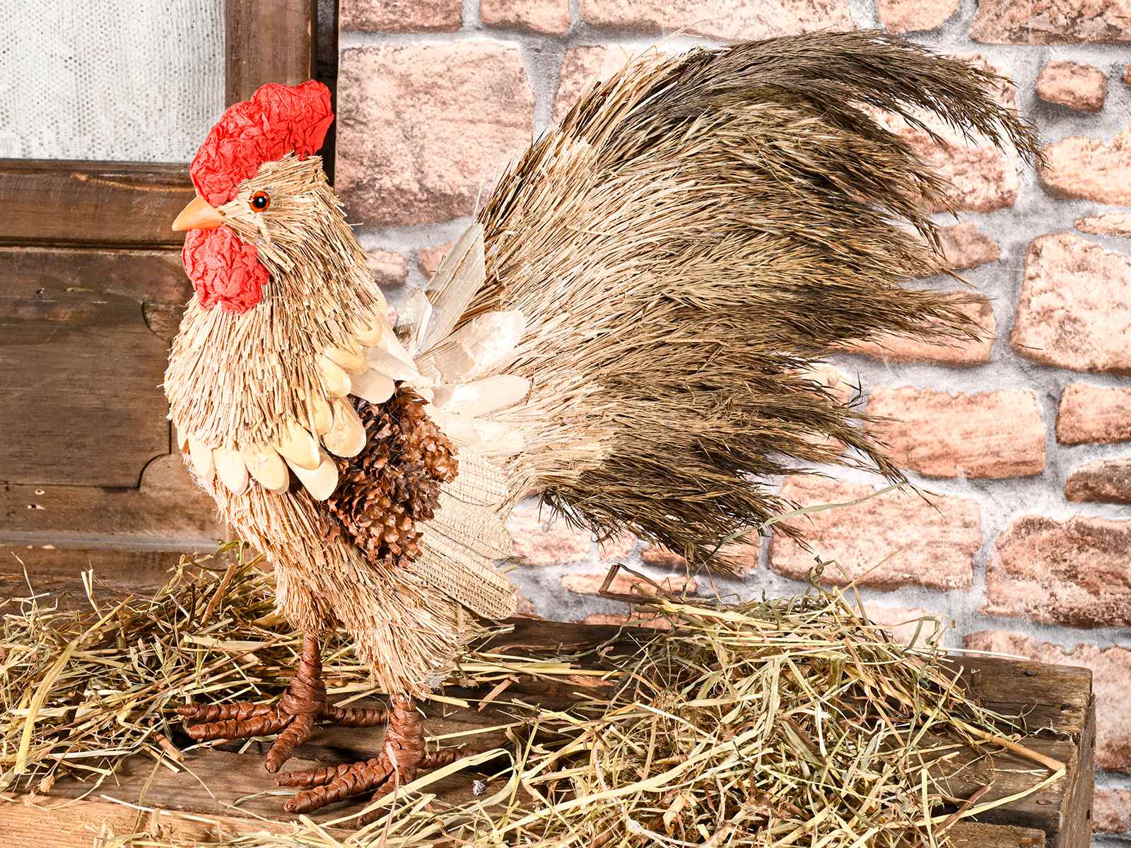 Coqs décoratifs en fibre naturelle avec queue pointue