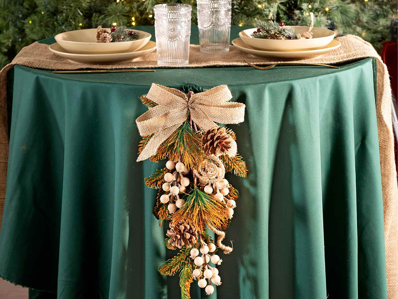 Couronne suspendue ornée de pommes de pin, de baies et d'un