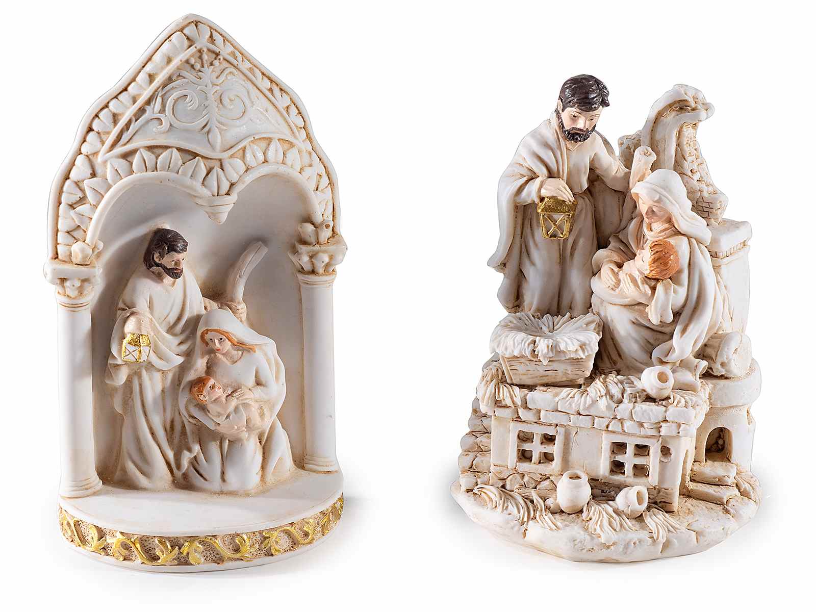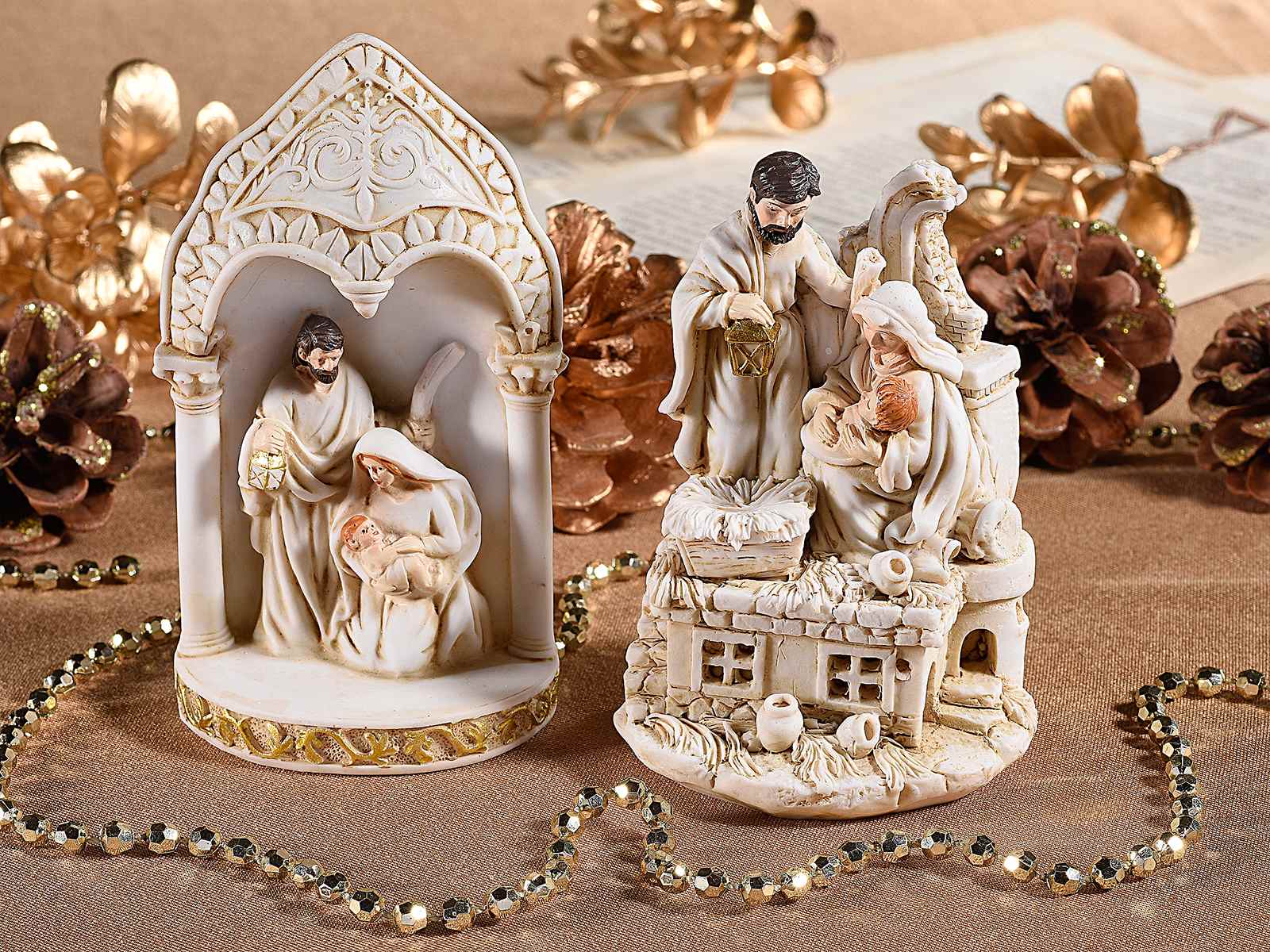Crèche de Noël Sainte Famille en résine avec détails dorés à poser