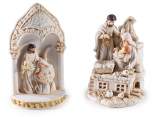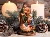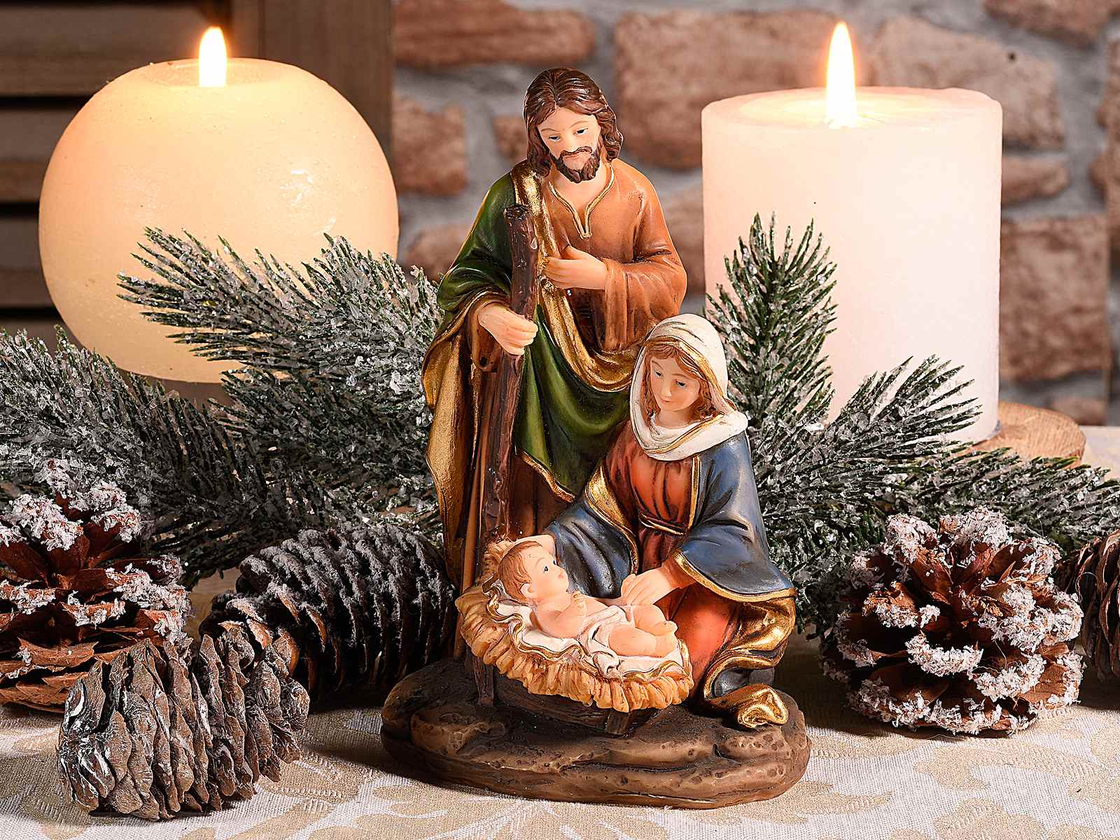 Crèche Sainte Famille en résine colorée avec détails dorés à poser