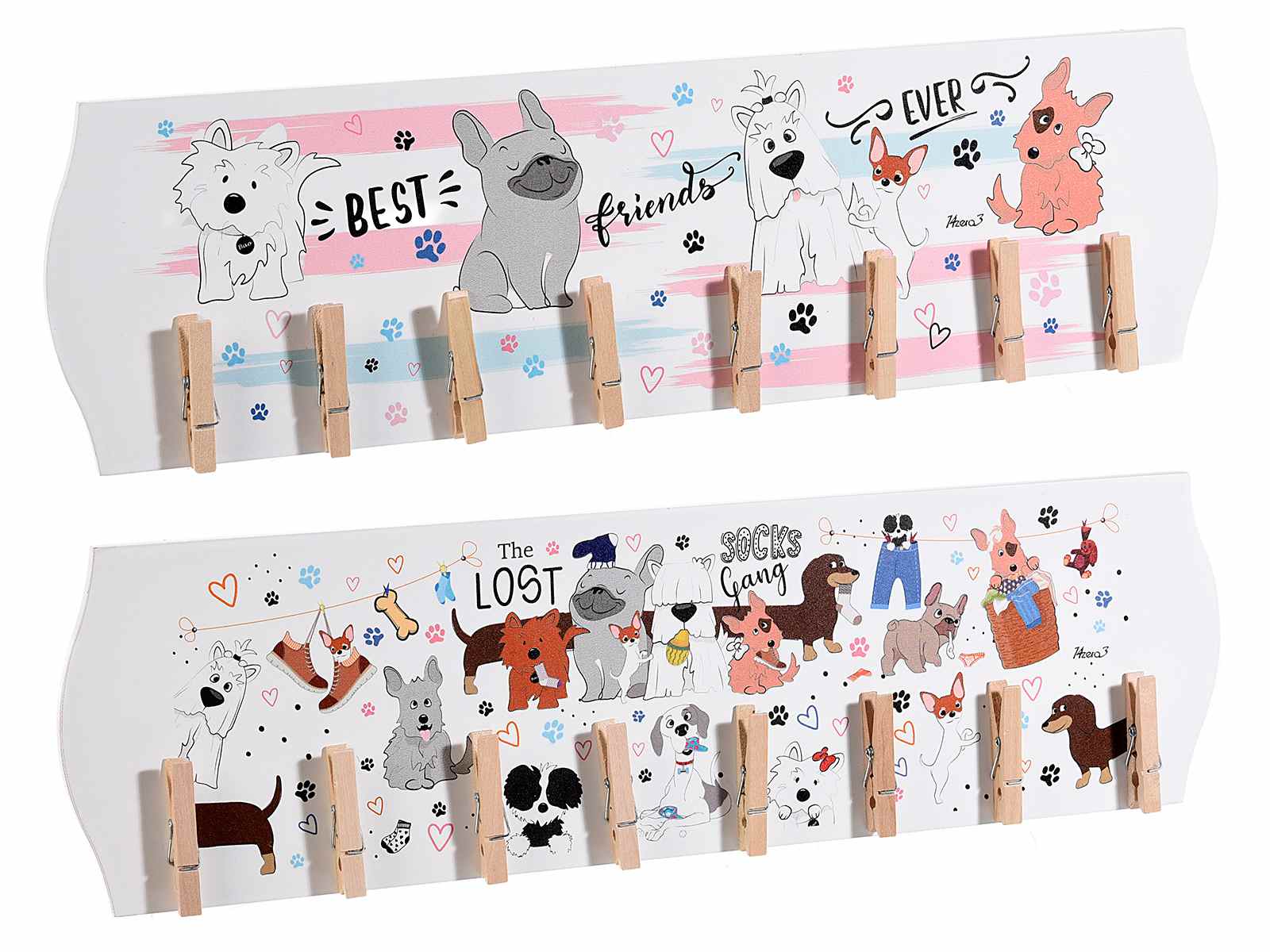 Décoration en bois Happy Dogs avec 8 patères à suspendre