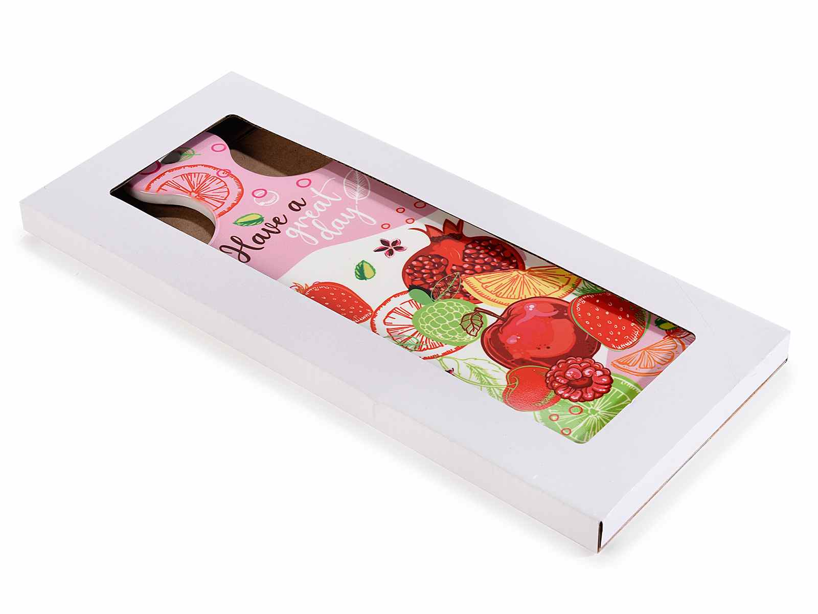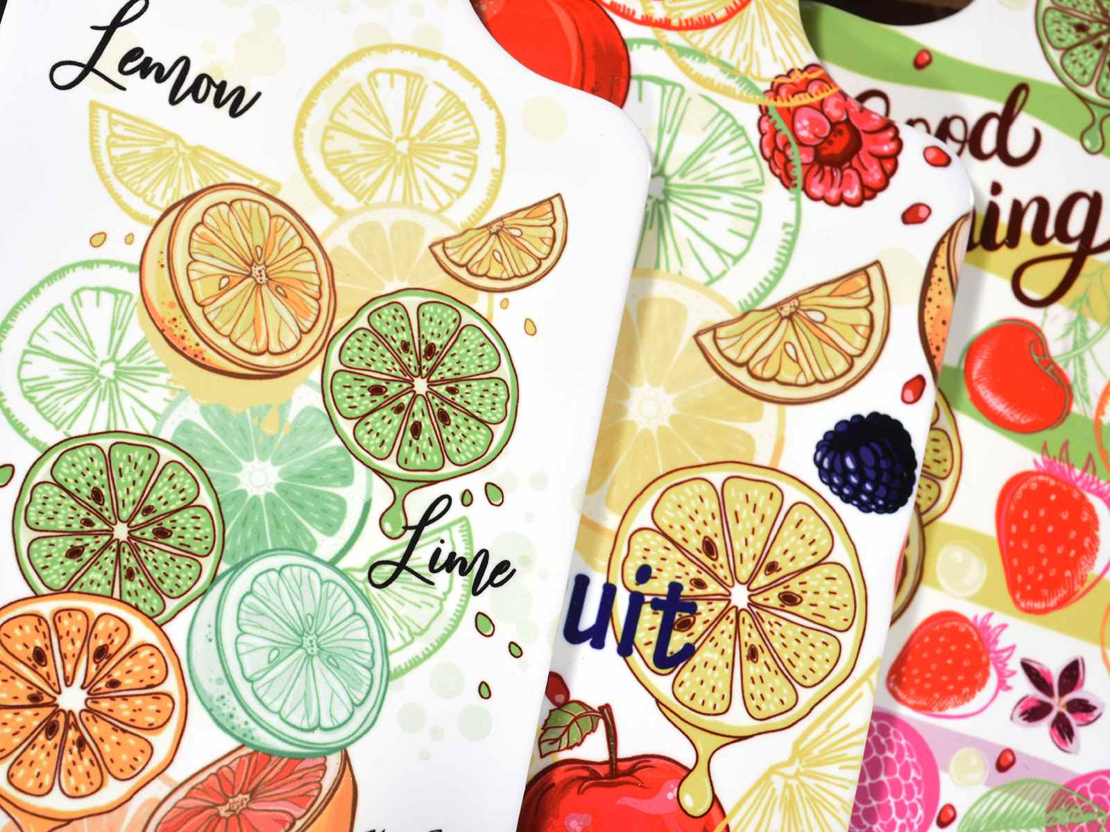 Dessous de plat planche à découper avec décorations de fruits d'été en céramique brillante et base en liège