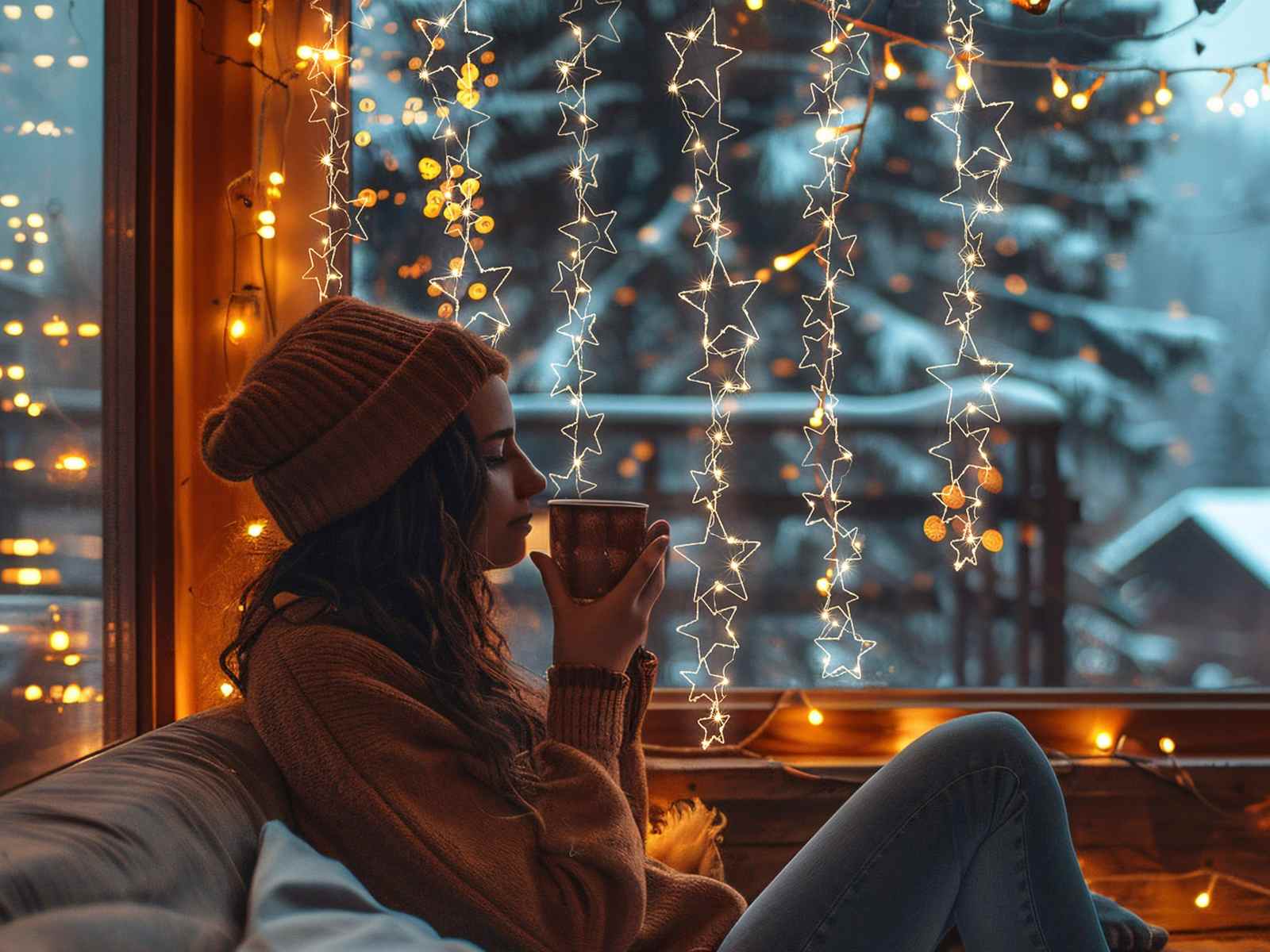 Cascades lumineuses d'étoiles avec lumières LED dans un ensemble de deux