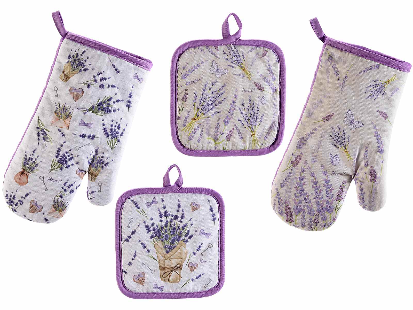 Ensemble de cuisine à imprimé lavande avec gants et maniques