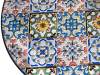 Table de jardin et 2 chaises en métal et faïence décorée, idéales pour les espaces extérieurs, les vitrines et les événements.