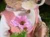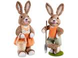 Lapins de Pâques décoratifs en fibre naturelle avec une houe et un panier, idéaux pour les vitrines de Pâques.