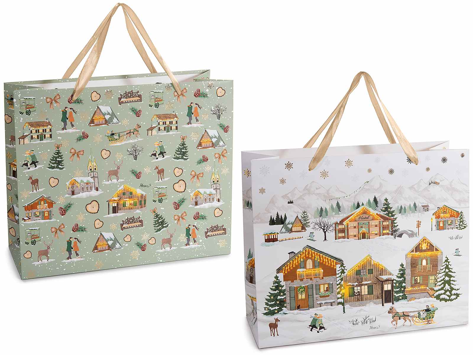 Lot de 2 paniers de Noël en tissu avec poignées |