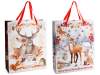 Grands sacs de Noël en papier / enveloppes / sacs à provisions avec anses en satin, motif animaux de la forêt