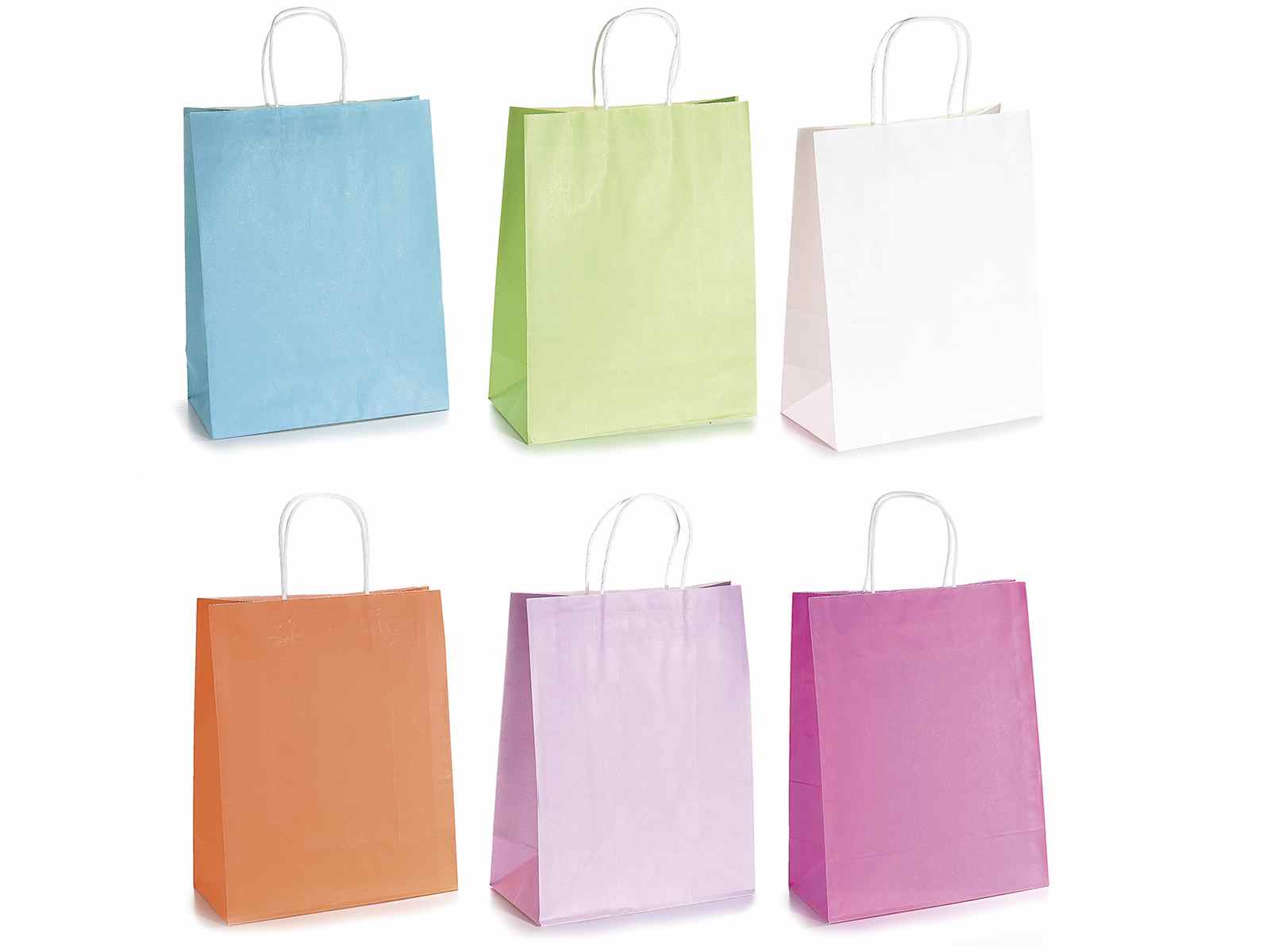Grands sacs en papier coloré / pochettes / sacs de courses avec poignées torsadées