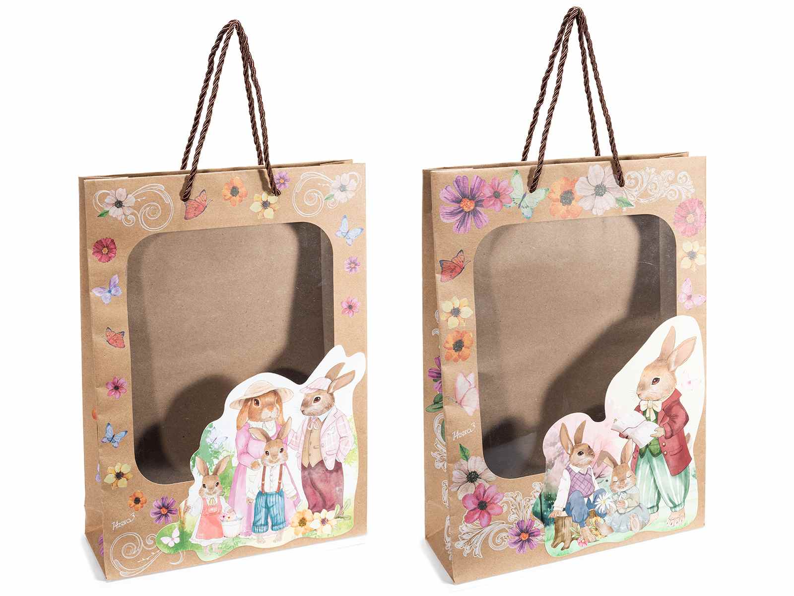 Grands sacs/caisses/enveloppes en papier kraft avec lapin de Pâques, imprimé floral et fenêtre transparente