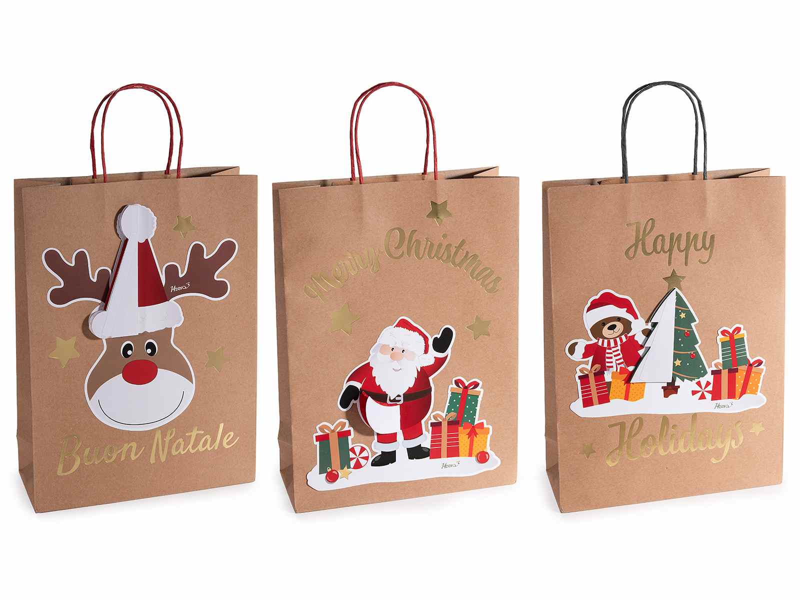 Sacs/enveloppes de Noël en papier kraft avec décorations de Noël en relief 3D et message de vœux, grand format