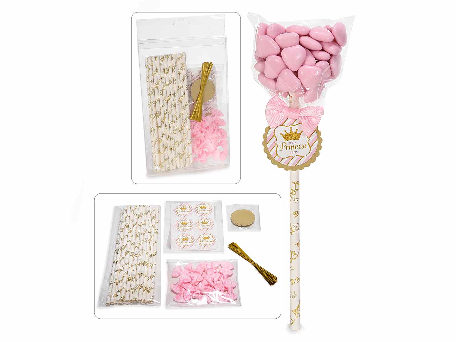 Conf. 18 kits de cadeaux de fête avec bâton, étiquette