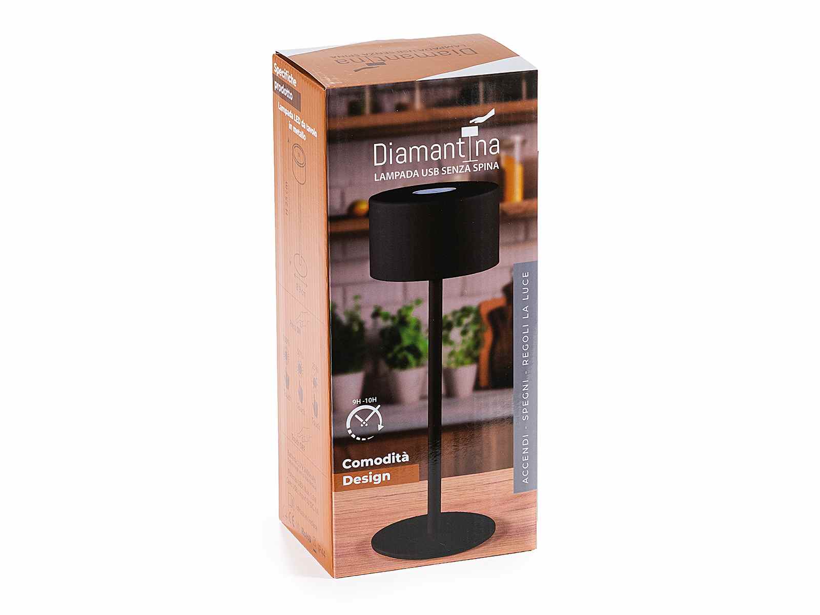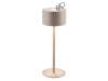 Lampe de table en métal blanc avec éclairage LED, activée par simple pression et rechargeable via le câble USB fourni. Son autonomie est de 9 à 10 heures. Elle propose 3 niveaux d'intensité réglables par simple pression. Lumière blanche chaude.