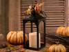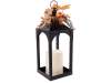 Lanterne avec bougie LED et brin de citrouille, feuilles et