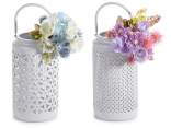 Lanterne en porcelaine avec lumières, bouquet de lavande et