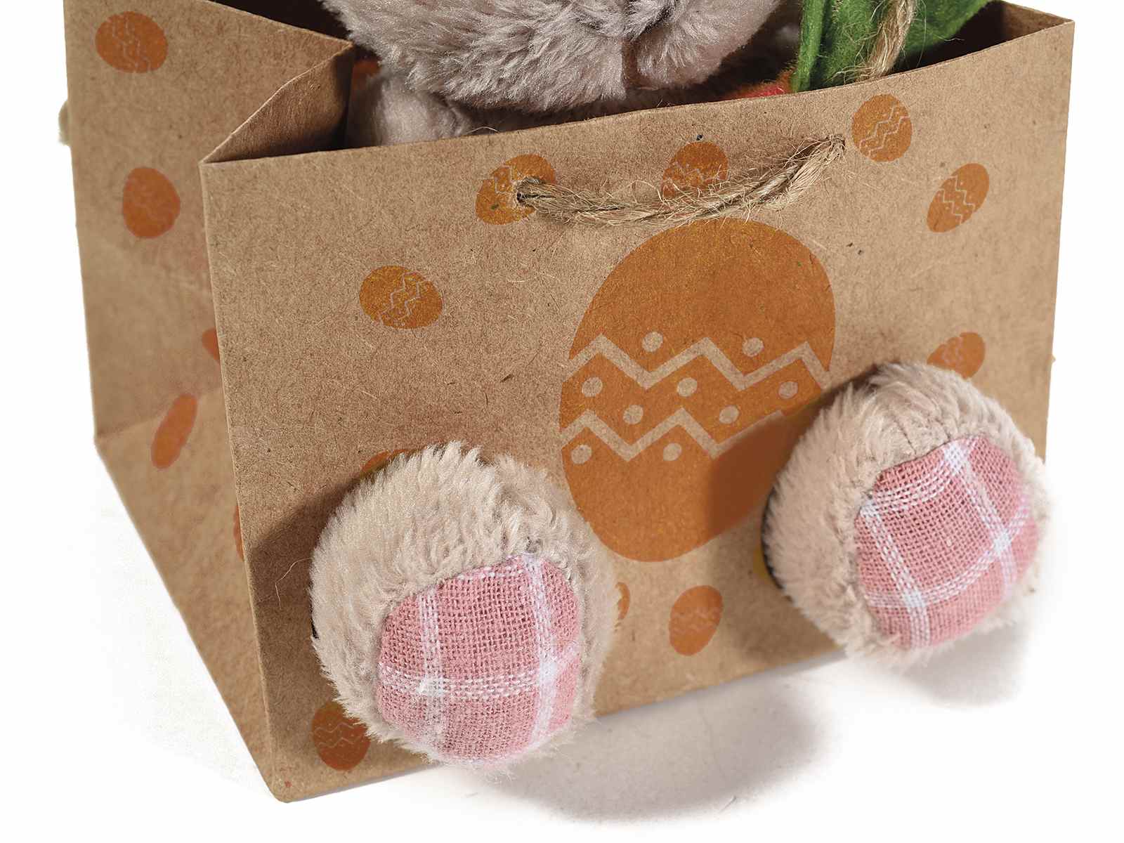 Lapins de Pâques en peluche avec carotte dans un sac, présentoir de 12 pièces