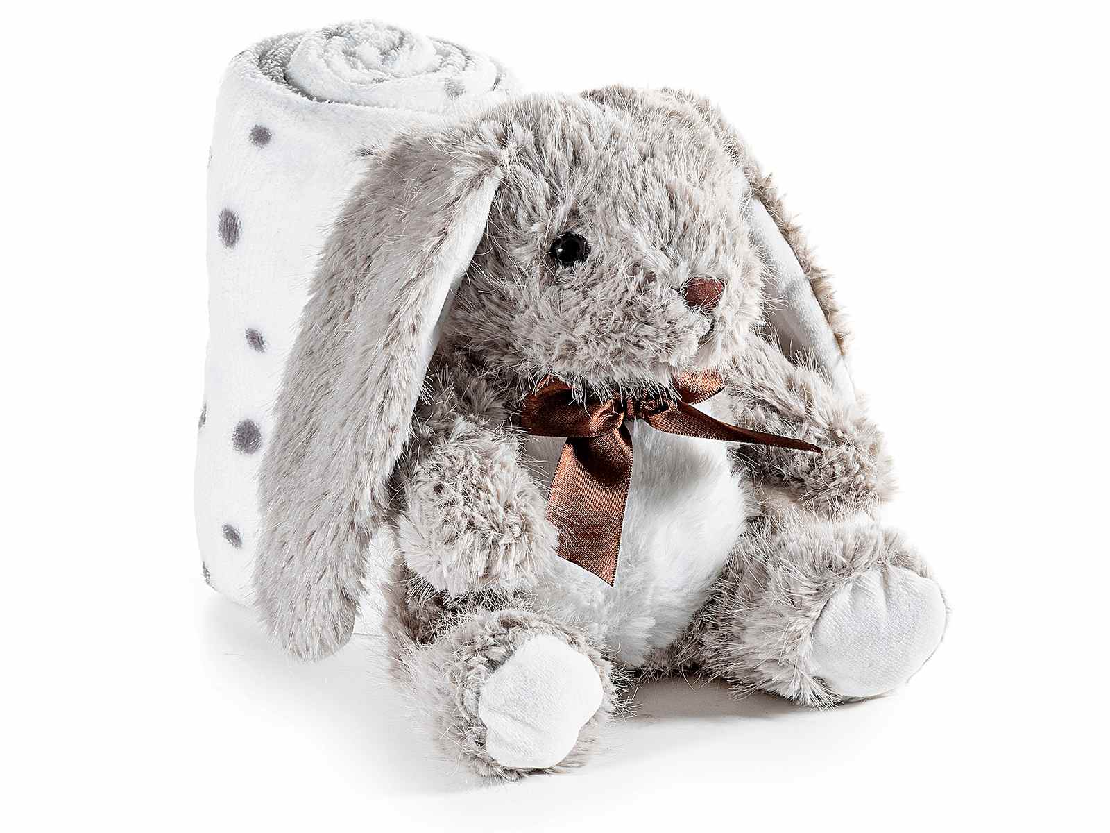 Lapins en peluche doux avec de longues oreilles, une couverture en polyester doux et un nœud décoratif