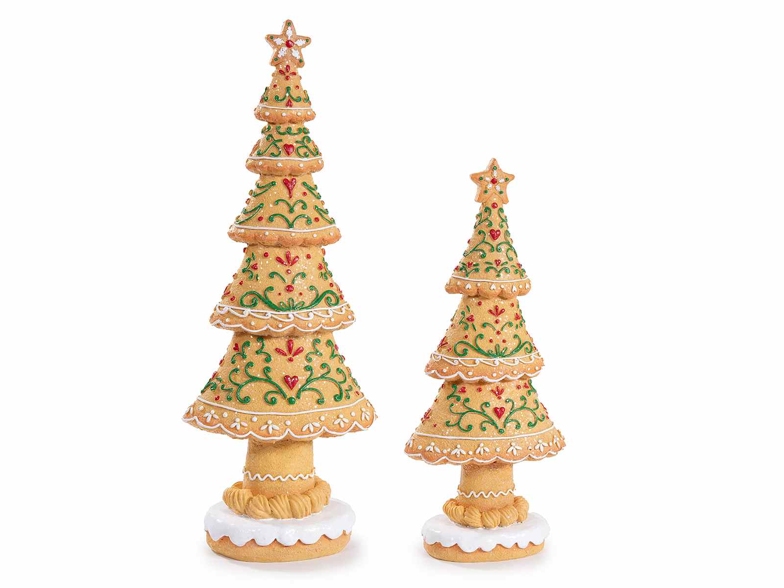 Sapin de Noël en pain d'épices avec décorations sucrées en relief et paillettes, en résine colorée dans un ensemble de deux pièces