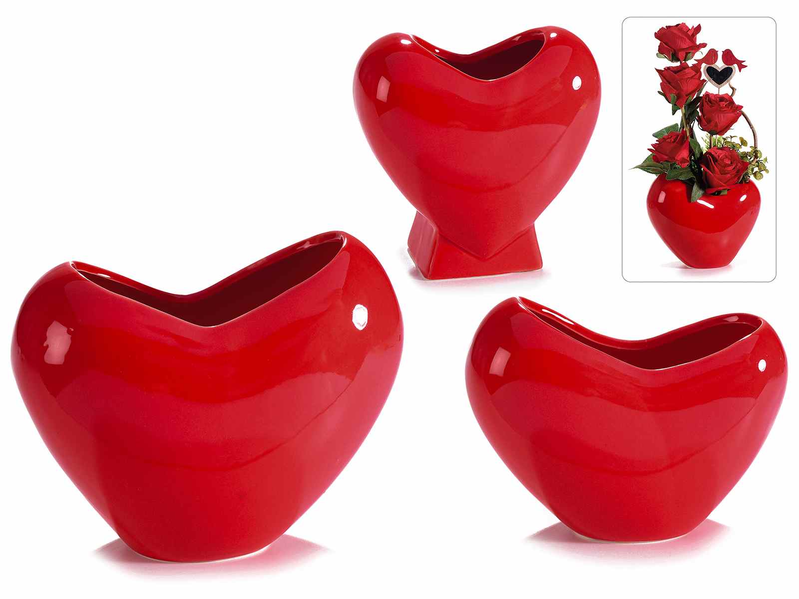 Lot de 3 vases en forme de coeur en céramique rouge brillant