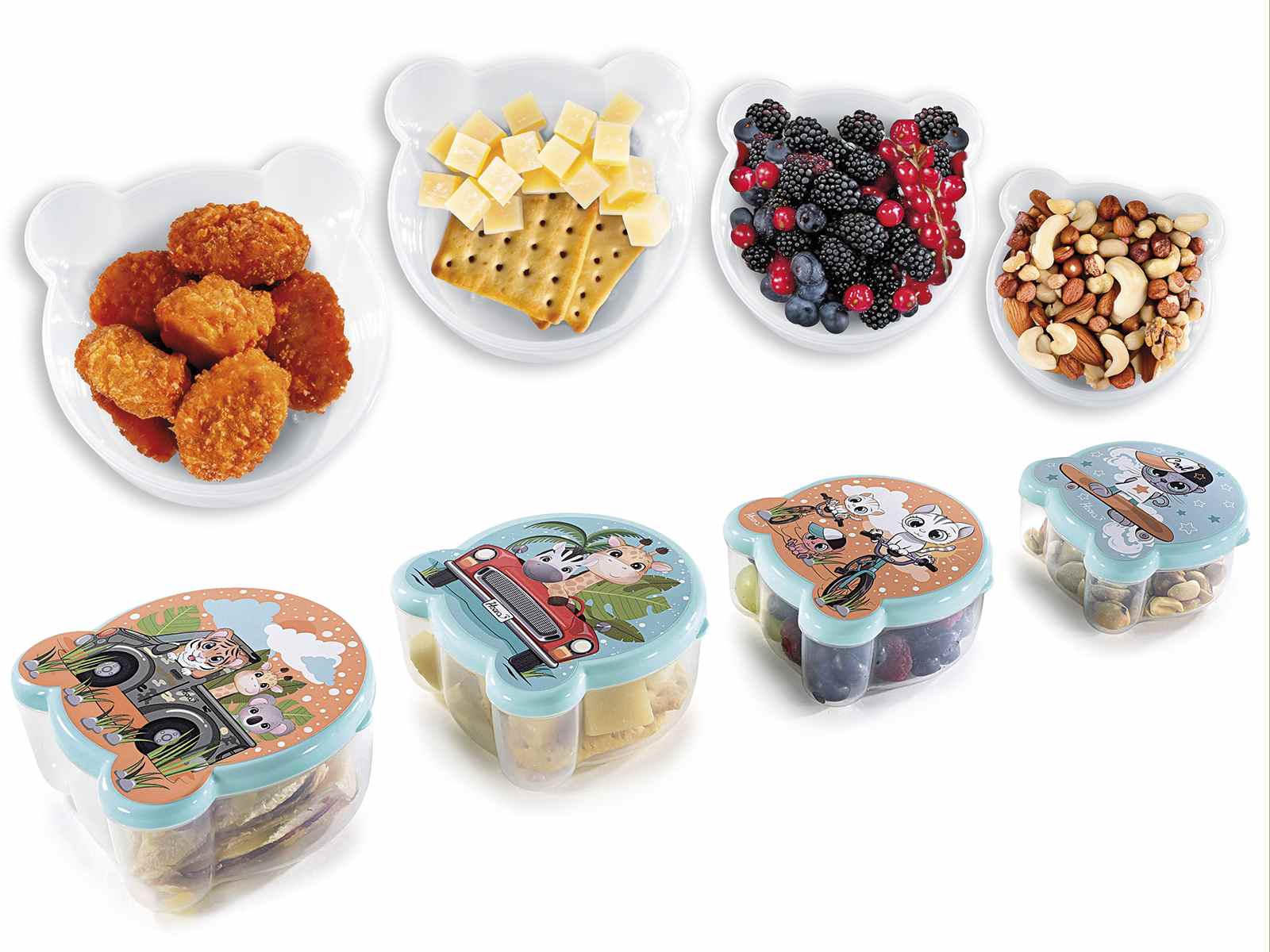 Lot de 4 boîtes à goûter en polypropylène Animaux