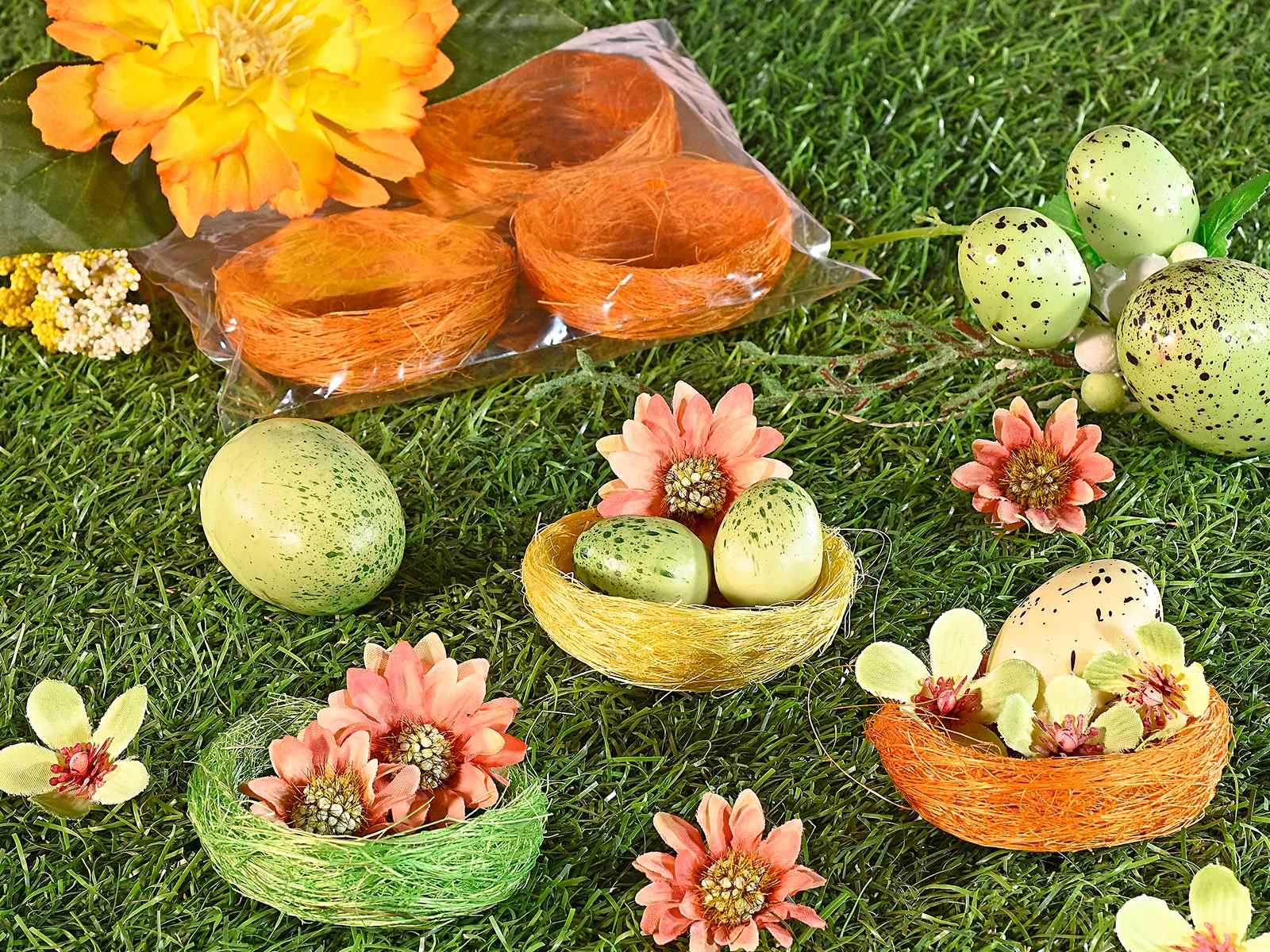 Décoration de Pâques en forme de nid de paille artificiel coloré, lot de 4