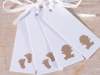 Lot de 50 étiquettes en papier blanc avec imprimé naissance couleur naturelle et ruban de satin blanc