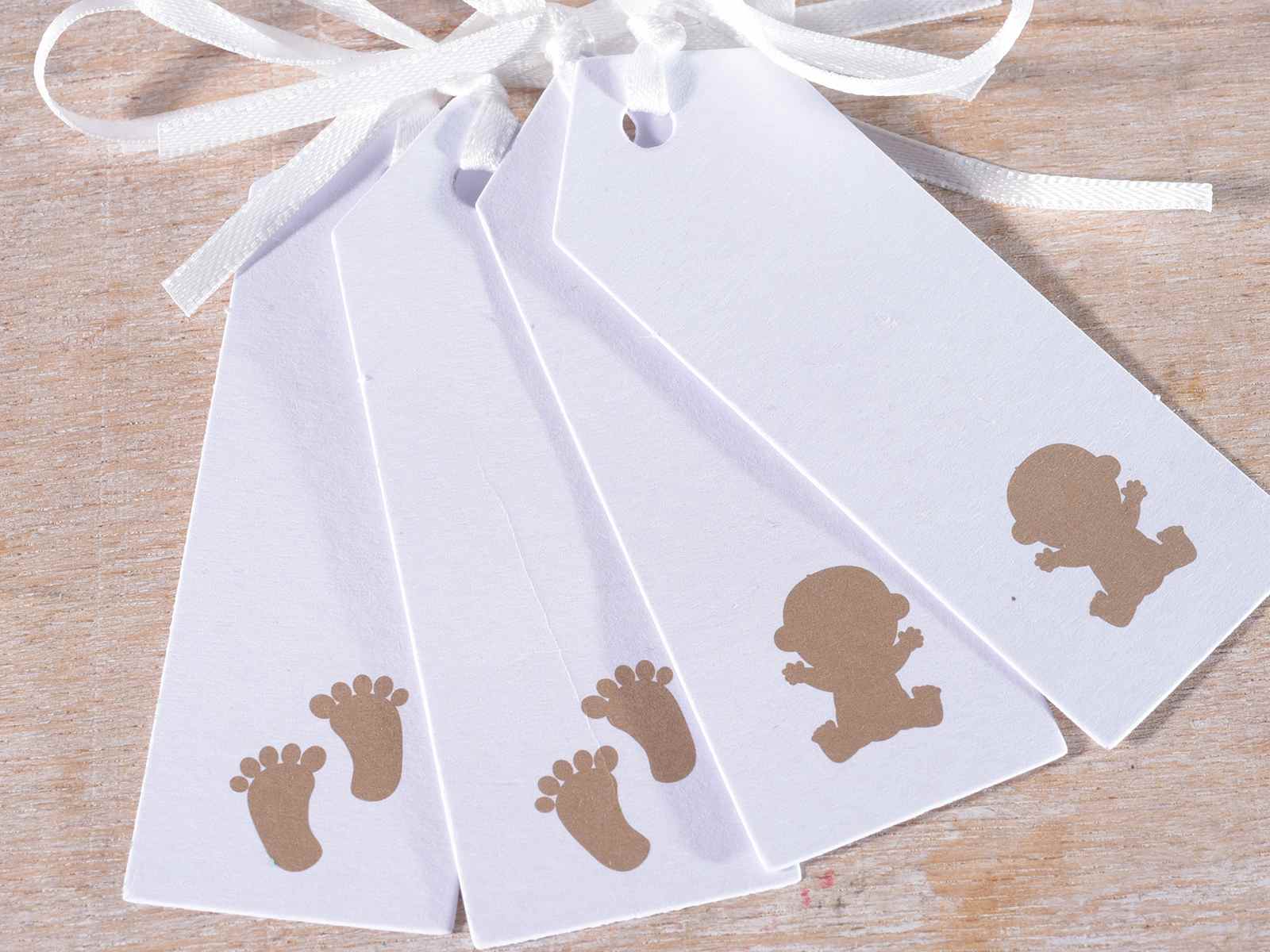 Lot de 50 étiquettes en papier blanc avec imprimé Naissance