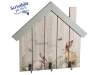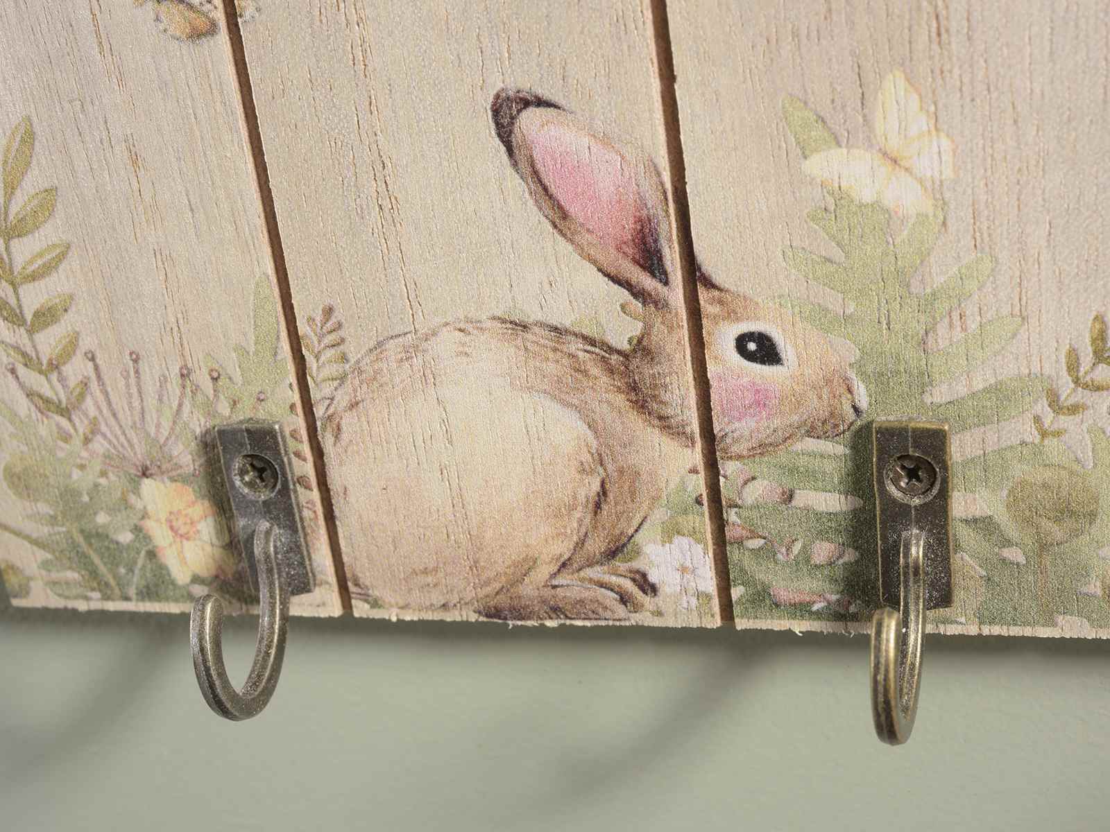 Porte-clés maisons en bois avec 3 crochets et motif lapin