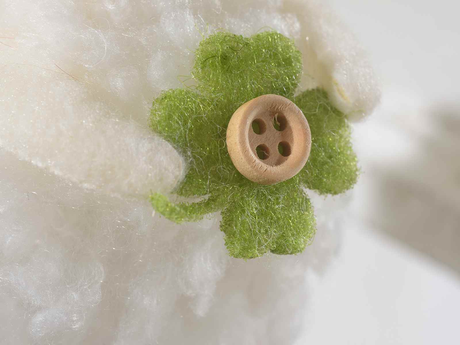 Mouton de Pâques en fourrure toute douce à suspendre avec décoration fleurie et oeufs