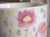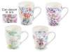 Tasses en porcelaine avec anse, décors floraux et écritures dorées