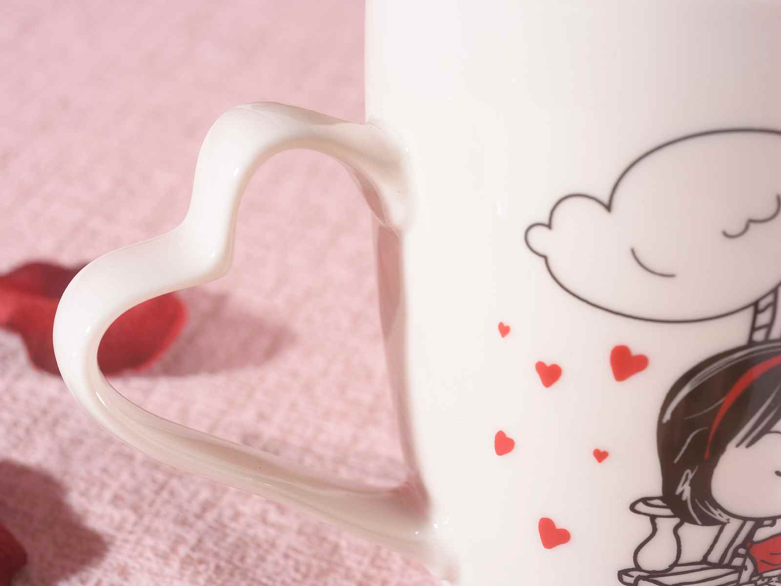 Mug en porcelaine de 350 ml avec anse en forme d'amoureux