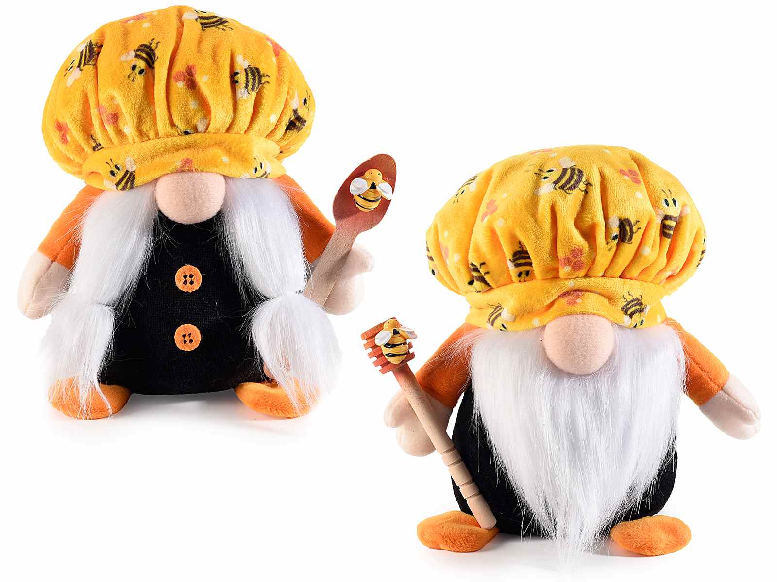 Nains de miel en tissu avec cuillère, cueilleur de miel et abeille en bois