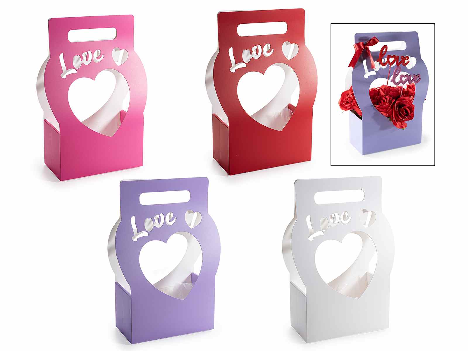 Paniers à fleurs colorés en forme de cœur, fabriqués en papier semi-imperméable et ornés du mot « Amour », parfaits pour la Saint-Valentin et la fête des mères.