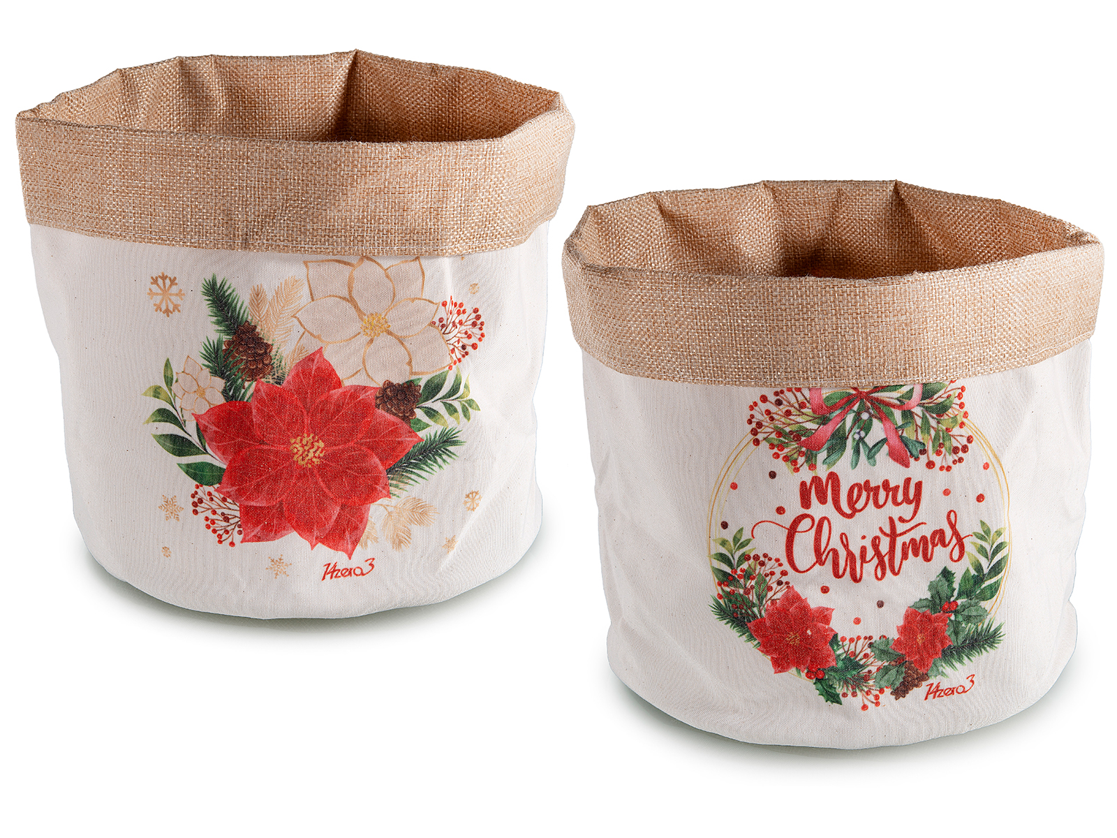 Panier en tissu avec intérieur en jute et imprimé de Noël