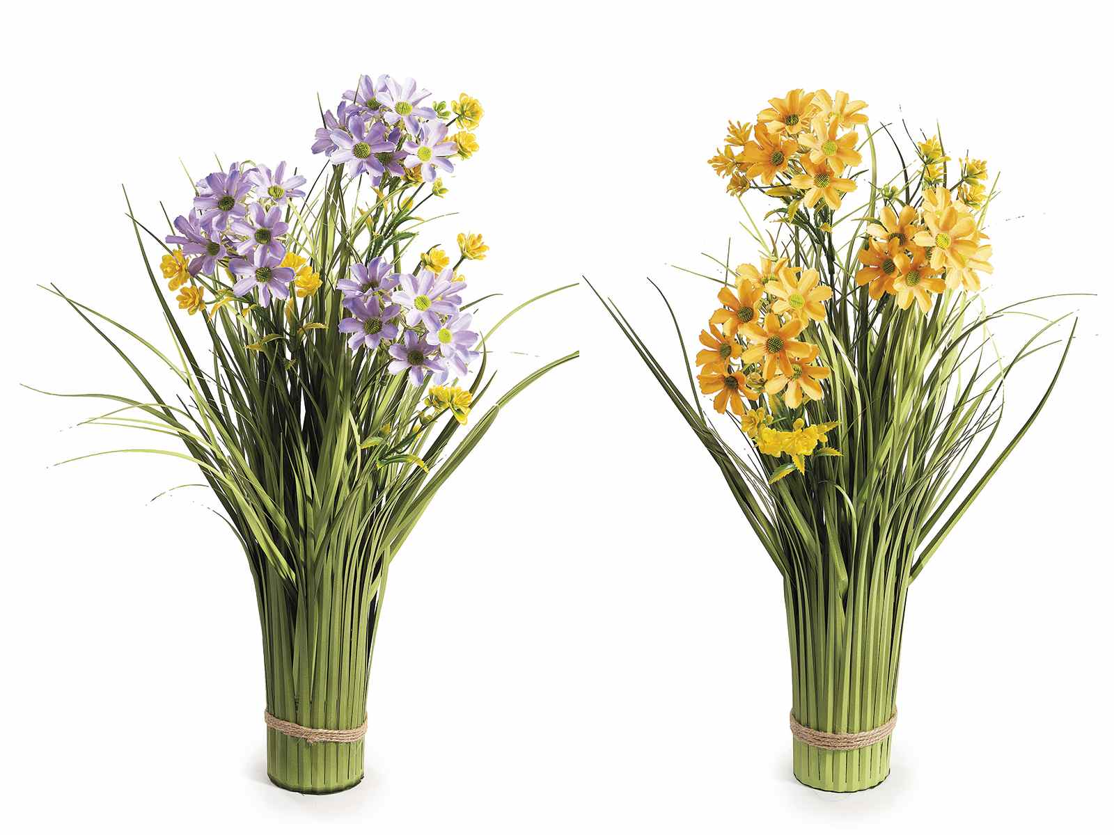 Plantes ornementales artificielles à fleurs jaunes et violettes à placer sur une table