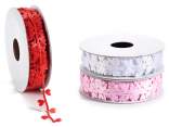 Rouleaux de rubans de satin rouge, or et argent avec imprimé doré « Je t'aime » pour la Saint-Valentin.