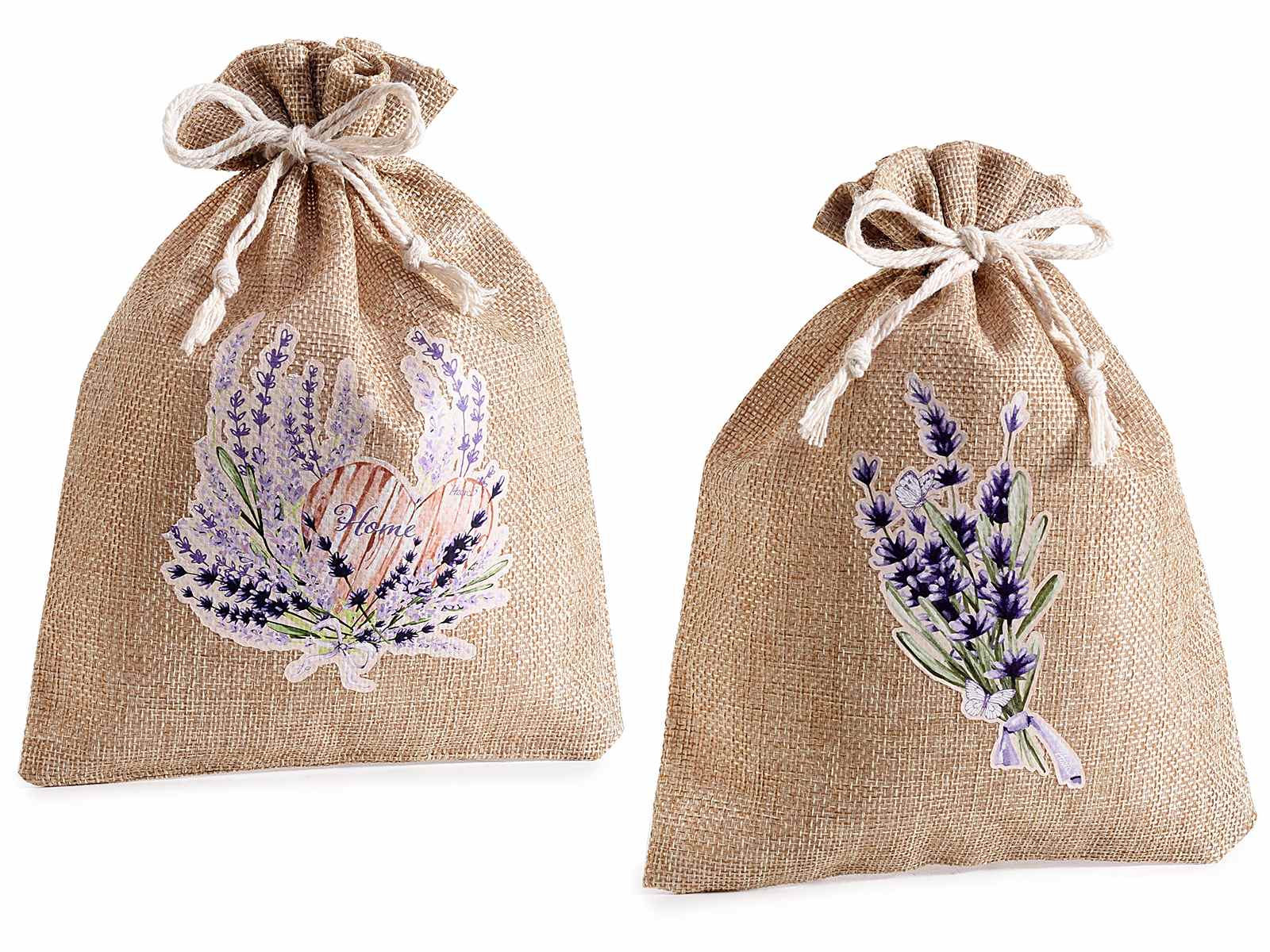 Sacs en jute avec imprimé lavande, cravate et noeud