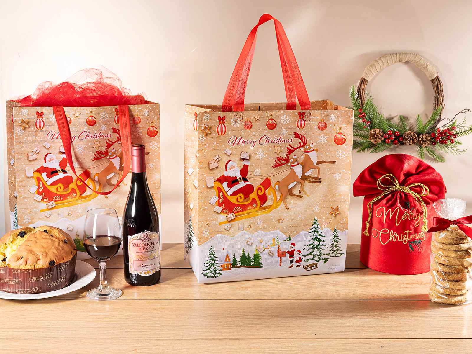 Sacs de Noël non tissés / sacs de courses imprimés avec le Père Noël et des rennes