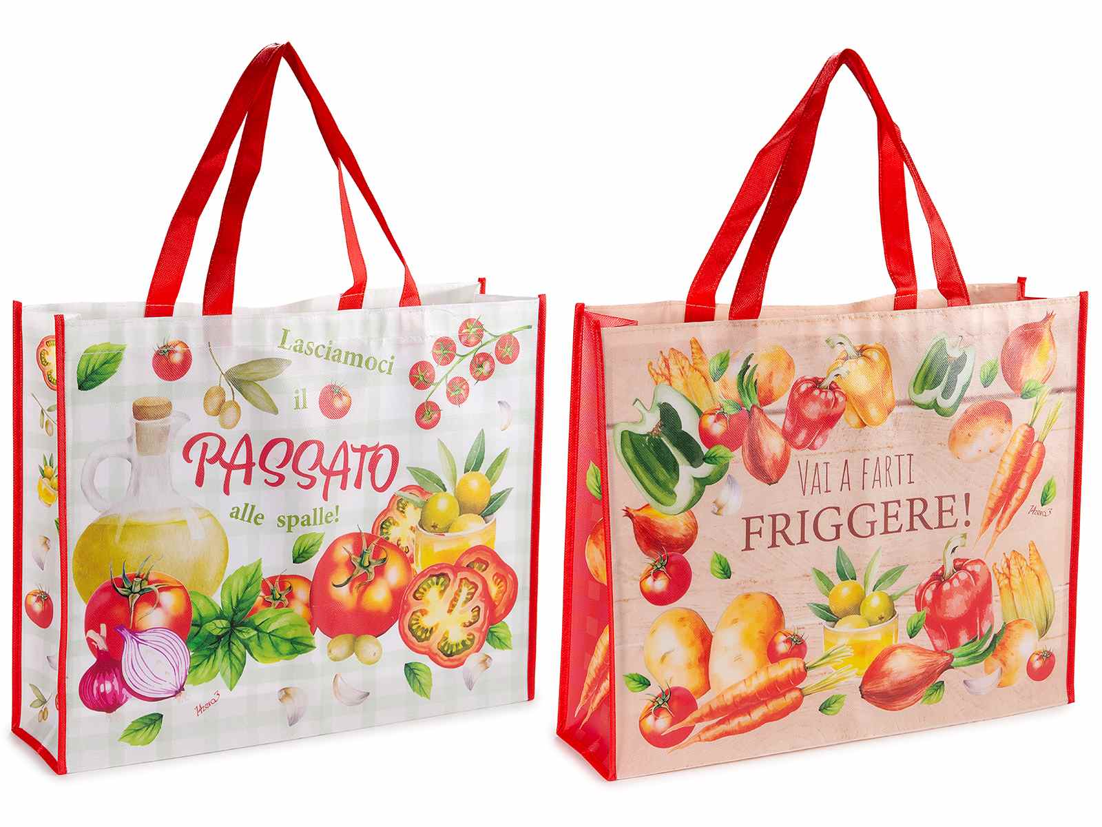Sacs de courses réutilisables en polyester rigide avec imprimé de légumes et inscription