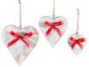 Ensemble de 3 cœurs en bois de style shabby chic pour la Saint-Valentin, ornés de nœuds en tissu rouge à suspendre.