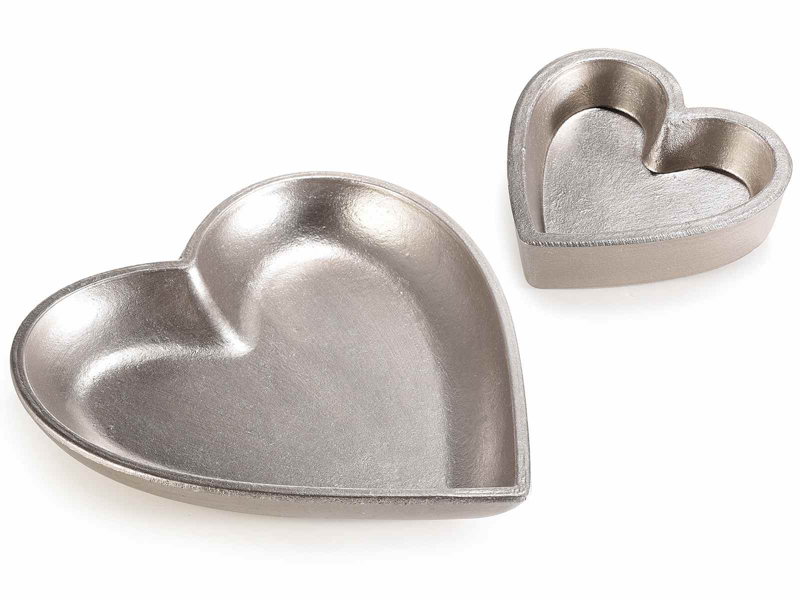 Set de 2 plateaux décoratifs en forme de coeur en bois coule