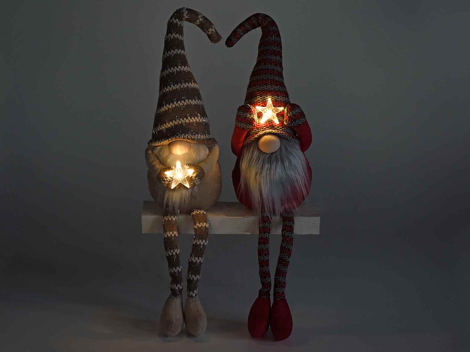 Père Noël longues jambes en tissu avec fils argentés et étoile lumineuse LED