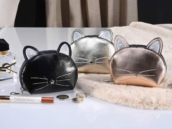 Trousses / porte-monnaie en similicuir en forme de chat avec nez en étoile