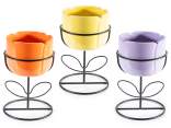 Vases en céramique colorée en forme de tulipe sur un pied en métal