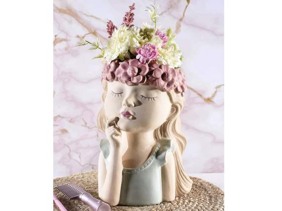 Vases en porcelaine mate colorée ornés d'un visage de femme et d'une couronne de fleurs